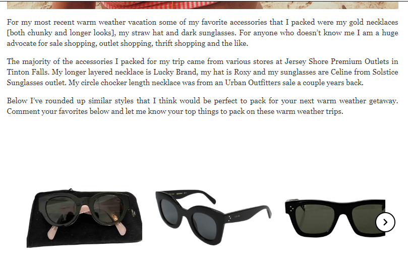 I take most of my own photos for the blog as well using a tripod and self timer and edit the photos using various applications. The main topics I cover on my blog are fashion focused and many are based off my outfits or favorite fashion finds. I use the Shopstyle Collective site to create product widgets to allow my readers to shop my looks or similar styles.
